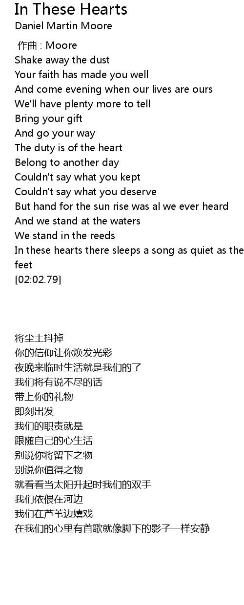| [01:52.73] | In these hearts there sleeps a song as quiet as the shadows at our feet |