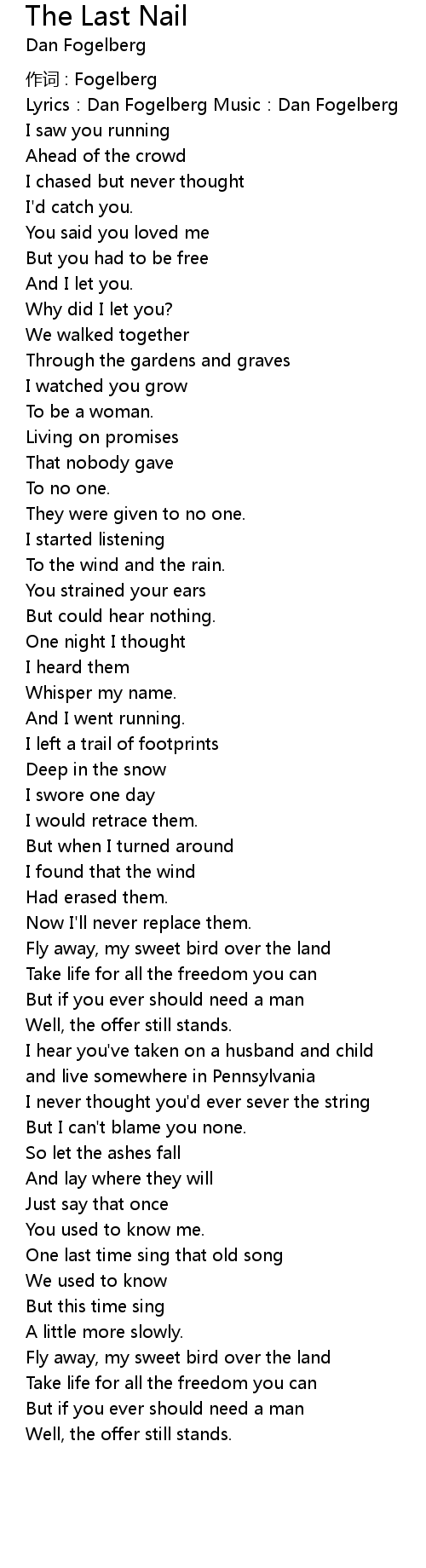 | 歌曲 | The Last Nail |