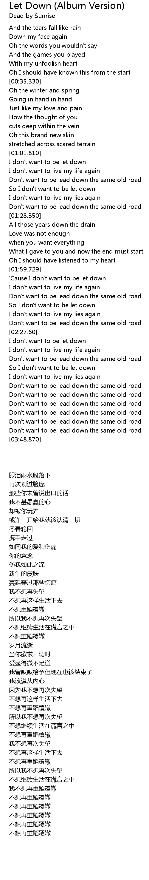 | [02:00.890] | ' Cause I don' t want to be let down |