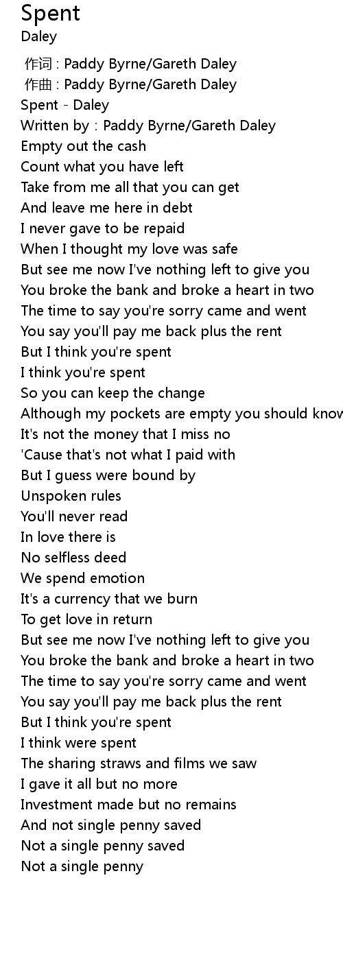 | [00:58.685] | You broke the bank and broke a heart in two |