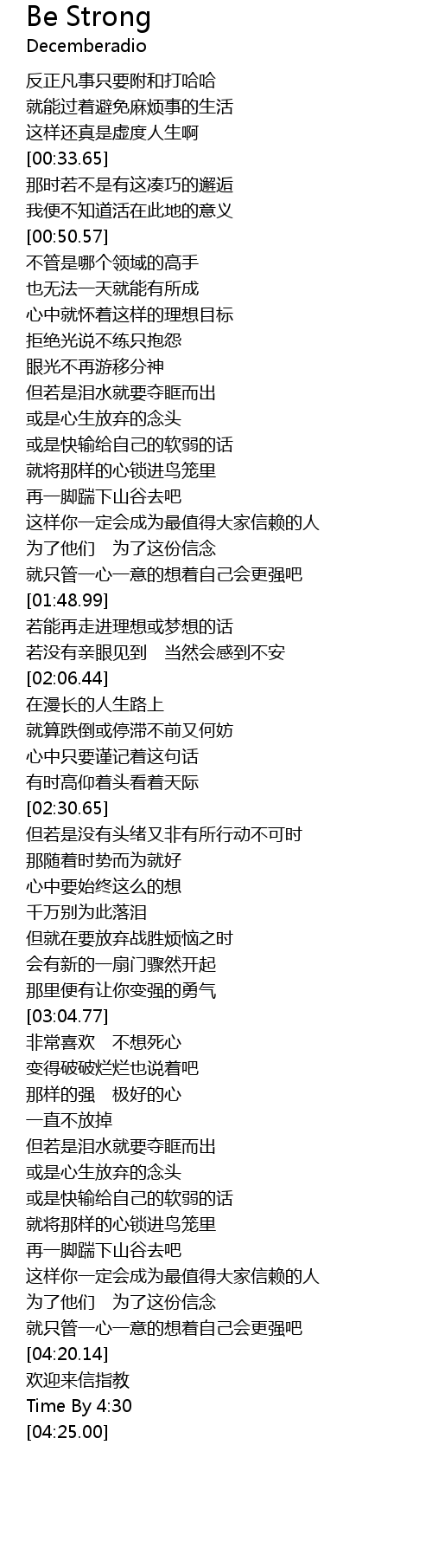 | [04:24.00] | Time By 4: 30 |