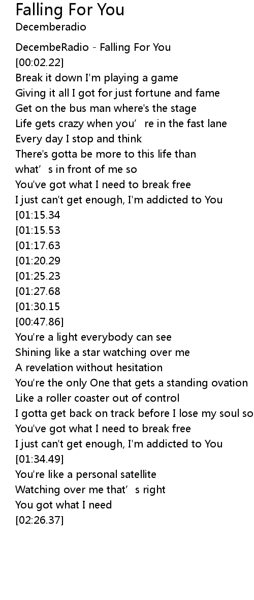 | [01:45.24][01:15.53][00:28.50] | I'm falling for You |