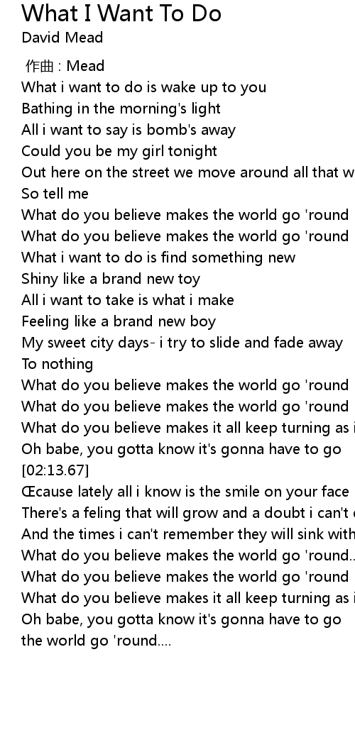 | [03:02.54] | What do you believe makes the world go 'round... |