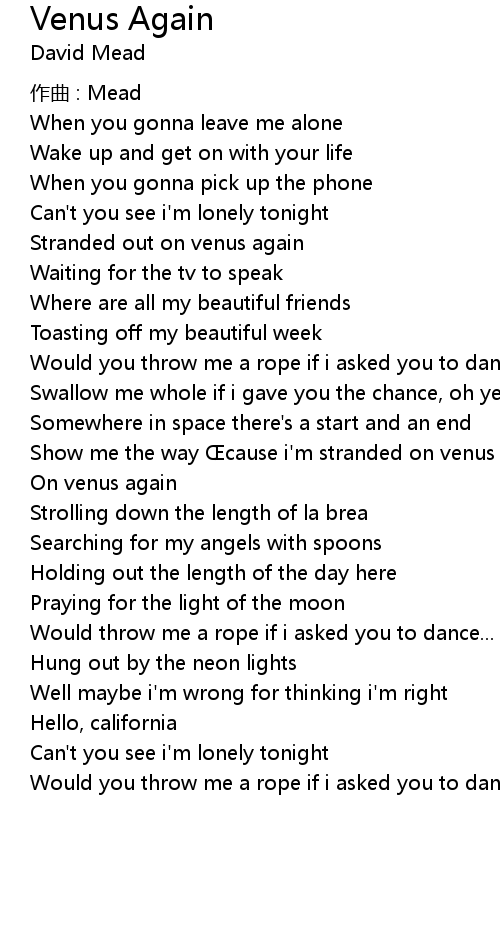 | Show me the way cause i' m stranded on venus again | |