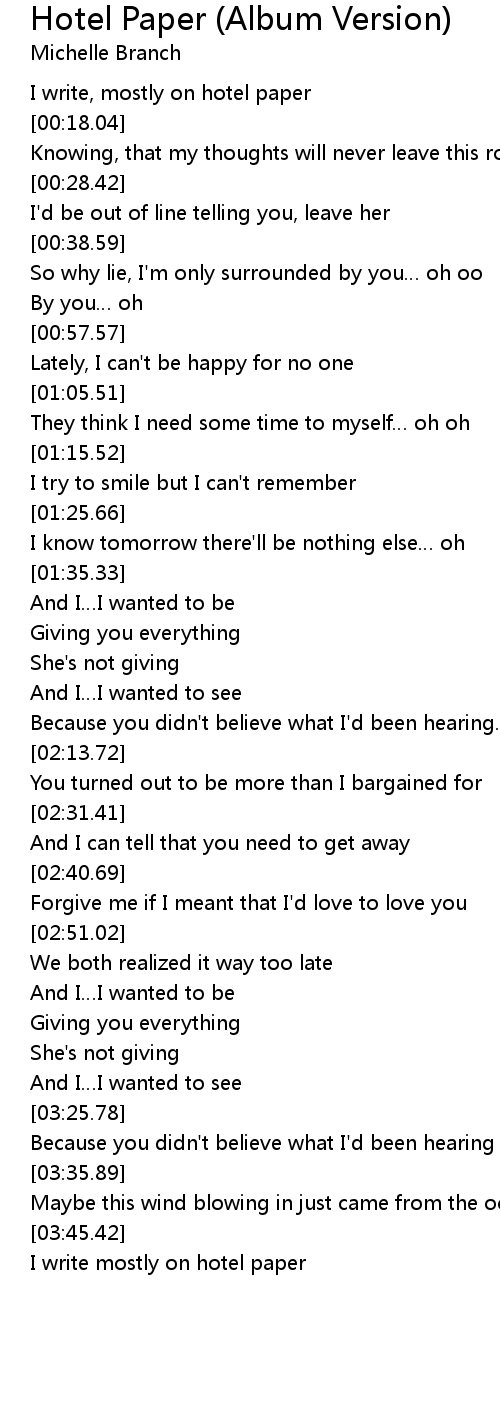| [02:05.24] | Because you didn't believe what I'd been hearing… oo oo… oh oh |