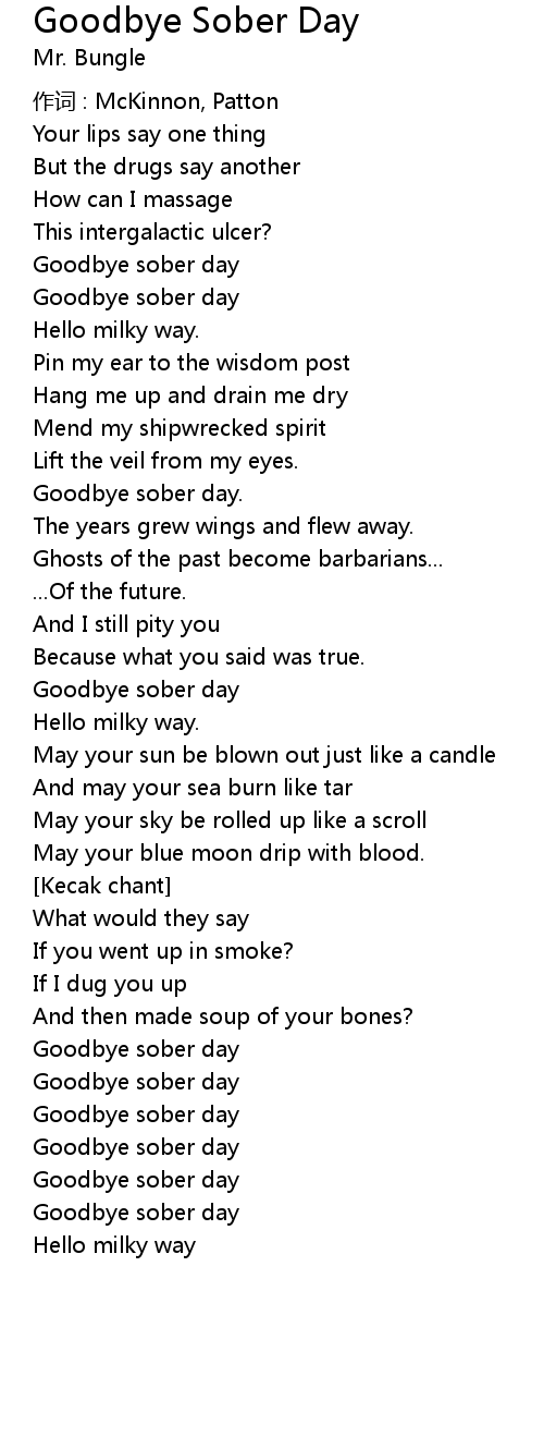 | 歌曲 | Goodbye Sober Day |
