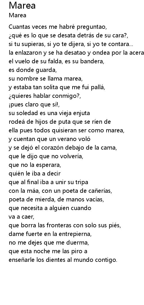 | ella pues todos quisieran ser como marea, | |