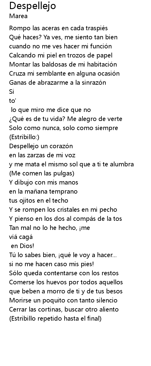 | Estribillo repetido hasta el final |