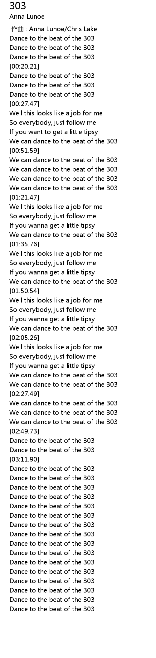 | [03:37.69] | Dance to the beat of the 303 |