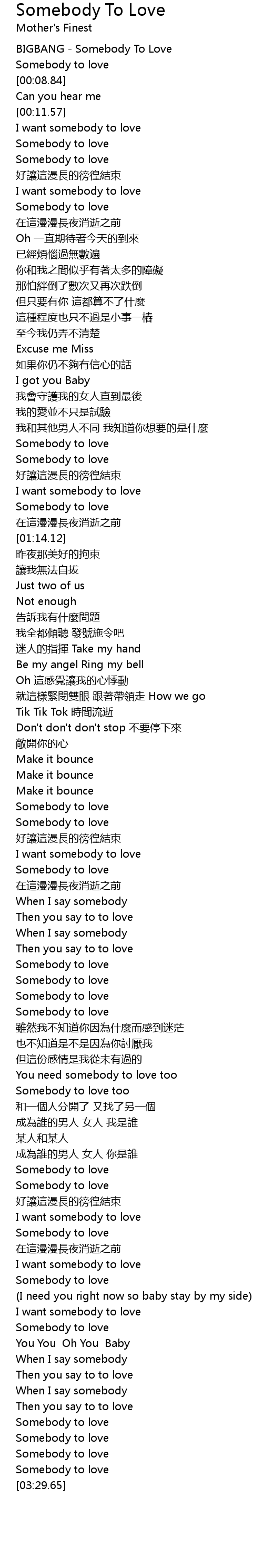 | [02:59.01] | I want somebody to love |