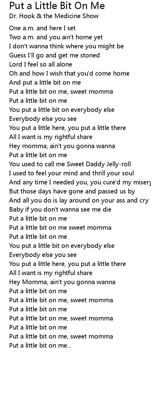 Put a little bit on me sweet momma |