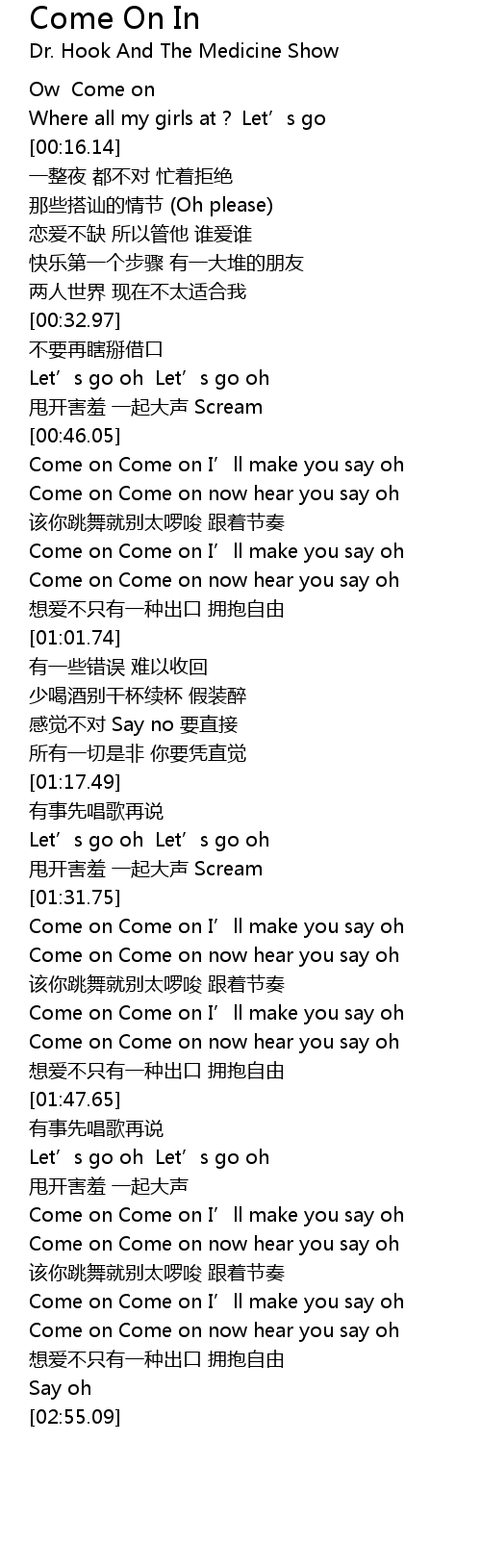 | [00:46.91] | Come on Come on I’ll make you say oh |