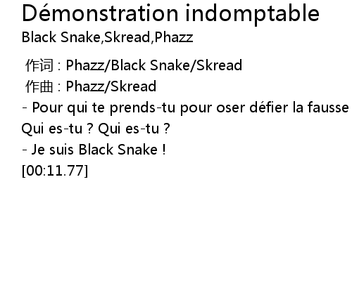 | [00:09.70] | Je suis Black Snake ! |