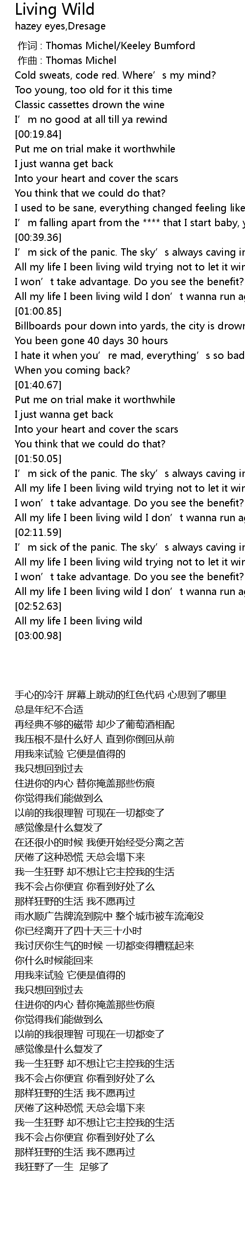 | [02:46.25] | All my life I been living wild I don’t wanna run again, oh no |