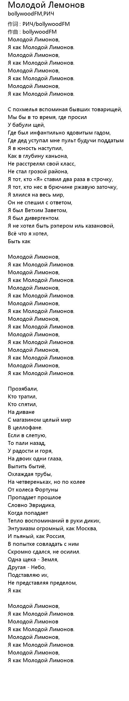 Молодой Лемонов 歌词