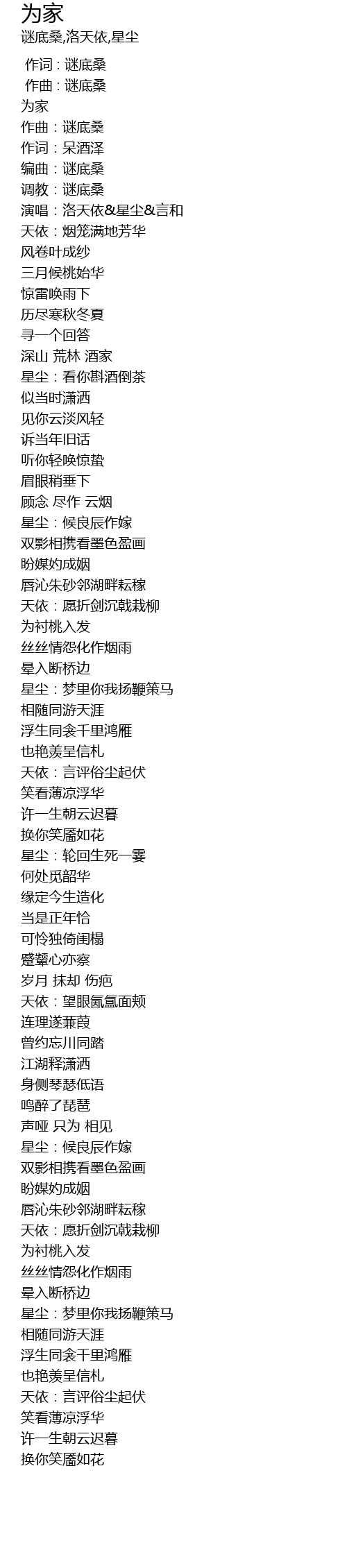 | [00:01.199] | 为家 |