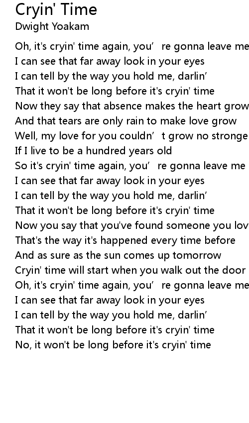 | No, it won' t be long before it' s cryin' time |