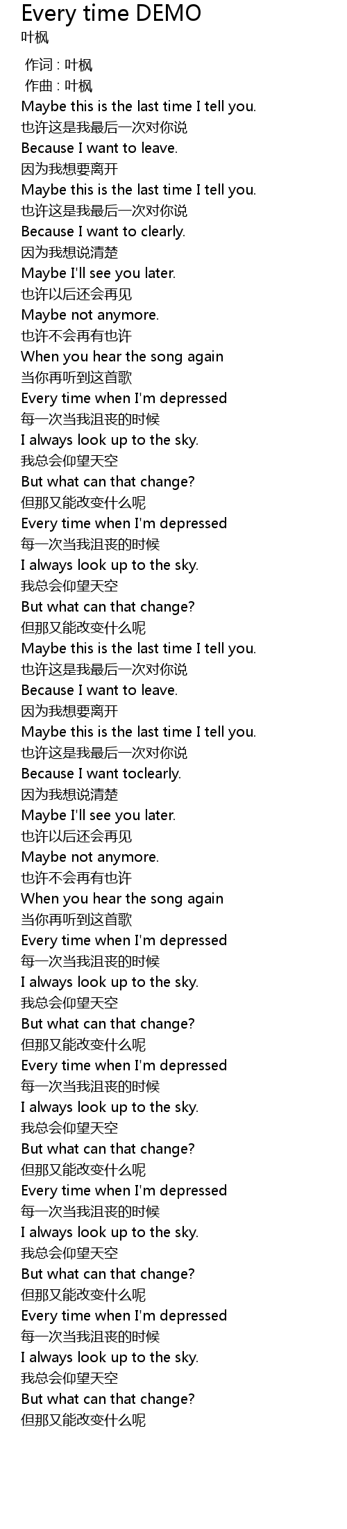 | 歌曲 | Every time DEMO |