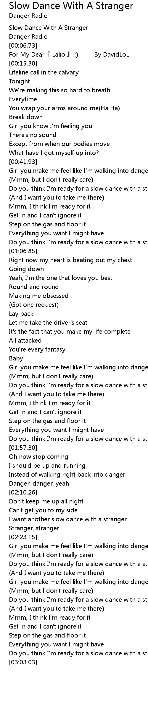 | [01:52.73] | Do you think I' m ready for a slow dance with a stranger stranger |