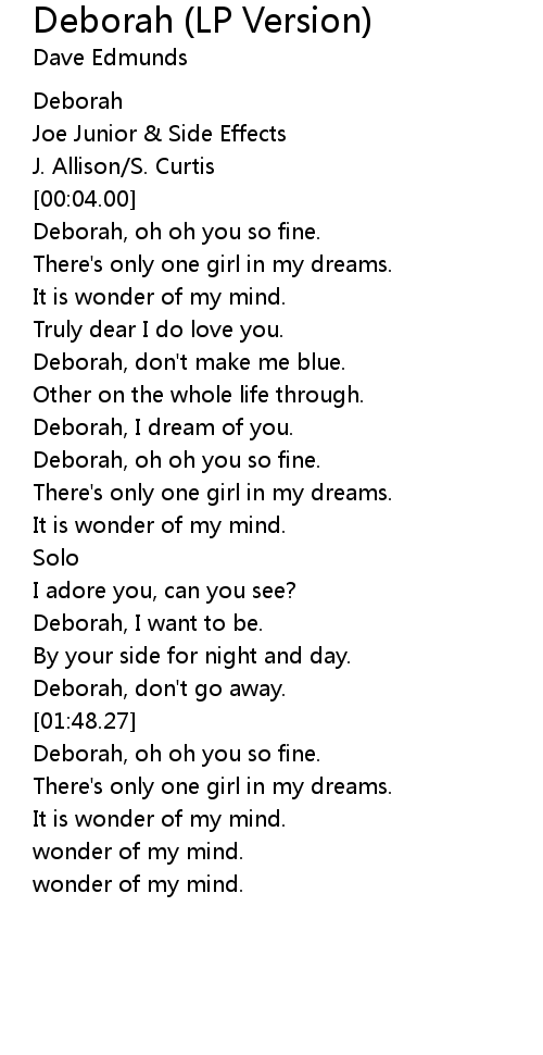 Deborah, oh oh you so fine. |