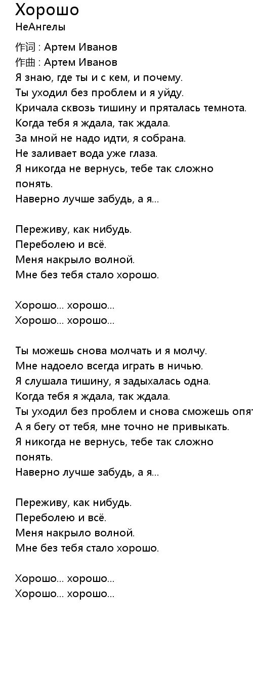 Мне без тебя стало хорошо. |