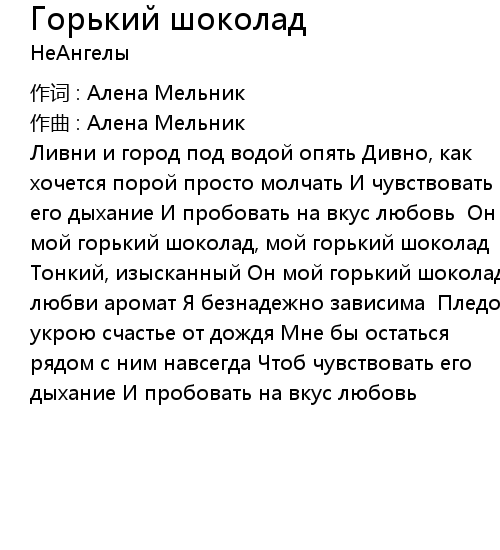 | 歌曲 | Горький шоколад |