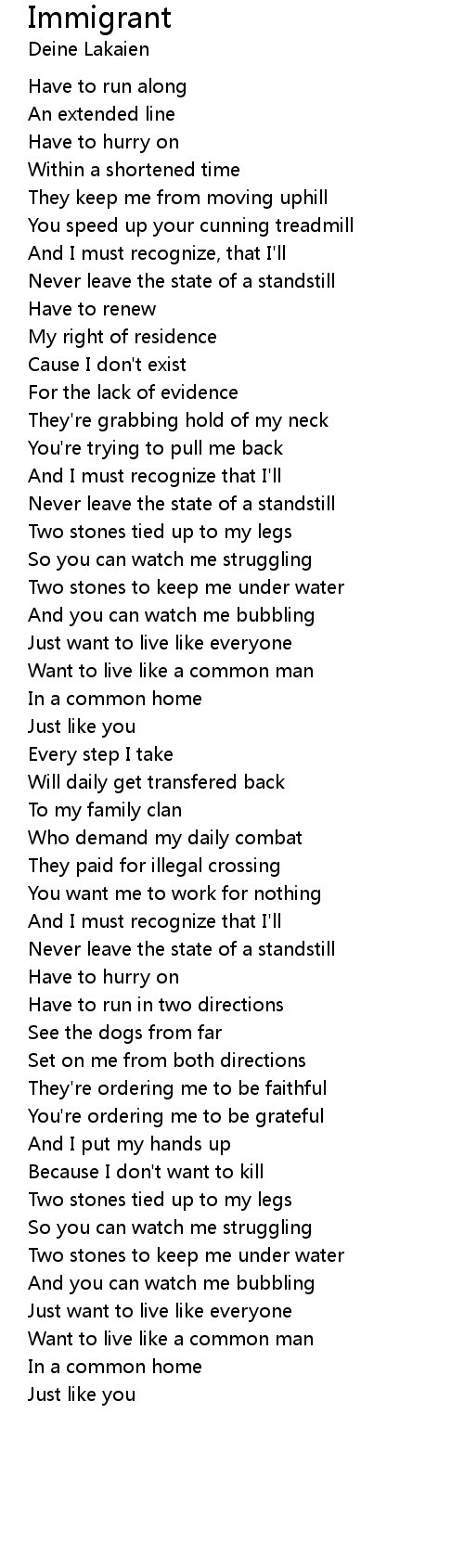 Immigrant 歌词