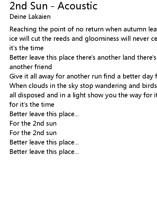 Reaching the point of no return when autumn leaves will no more burn and growing ice will cut the reeds and gloominess will never cease then it's the time then it's the time |