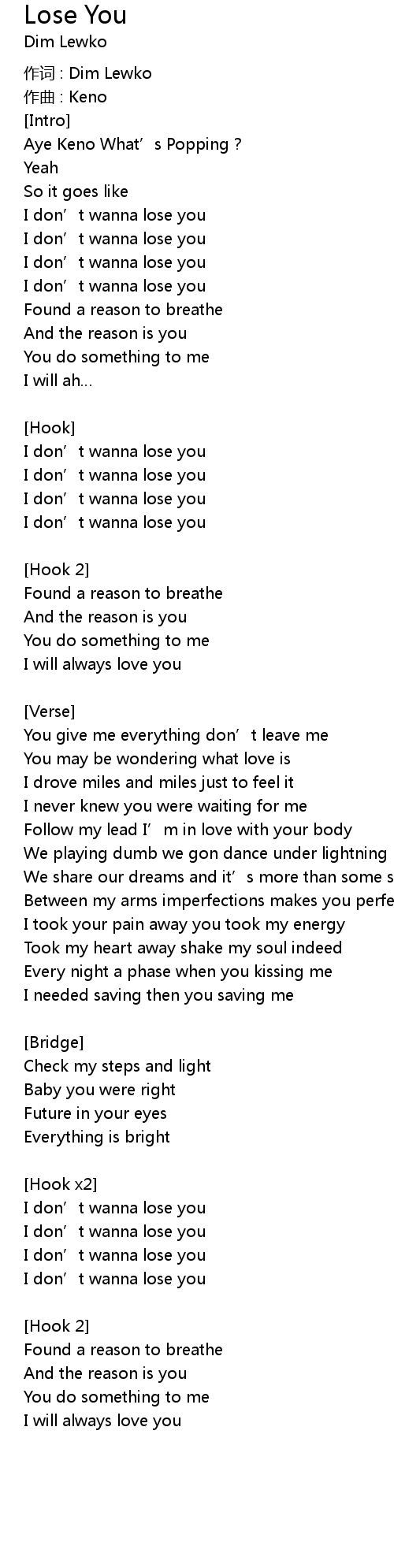 | 歌曲 | Lose You |