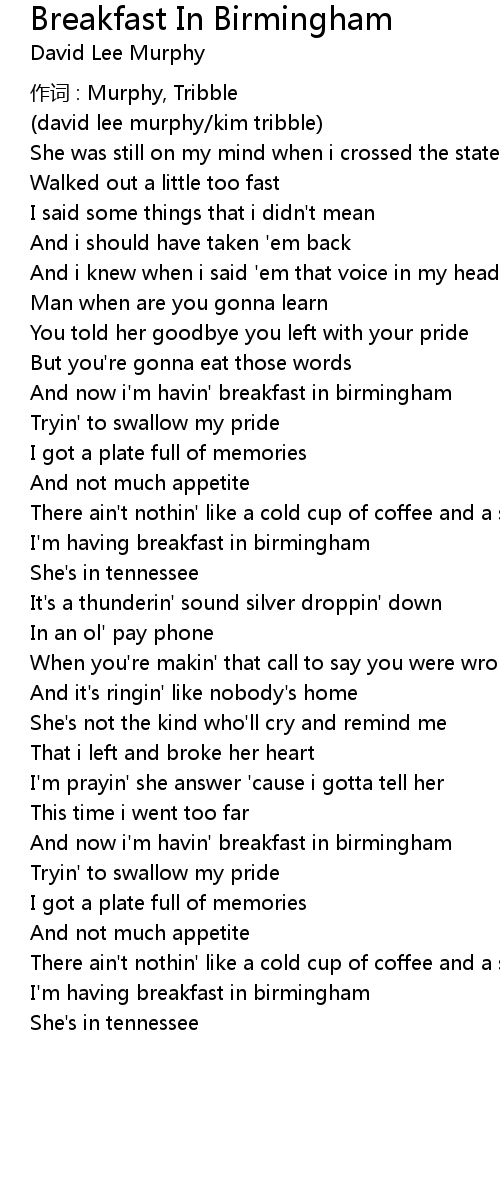 | 歌曲 | Breakfast In Birmingham |