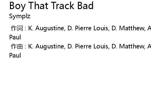 | [00:00.000] | 作曲 : K. Augustine, D. Pierre Louis, D. Matthew, A. Thomas, J. Paul |