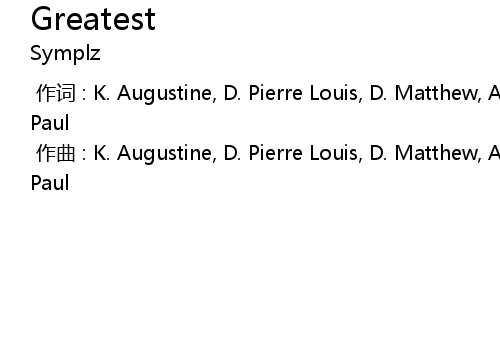 | [00:00.000] | 作曲 : K. Augustine, D. Pierre Louis, D. Matthew, A. Thomas, J. Paul |