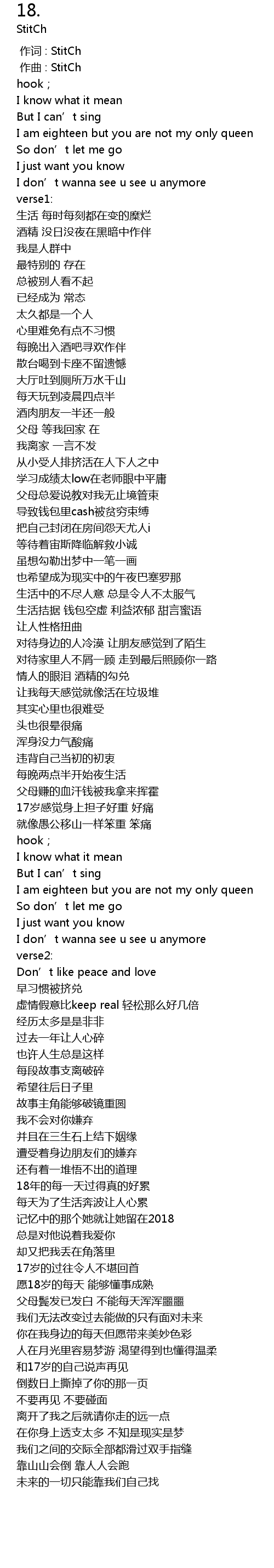 | [00:18.742] | I am eighteen but you are not my only queen |