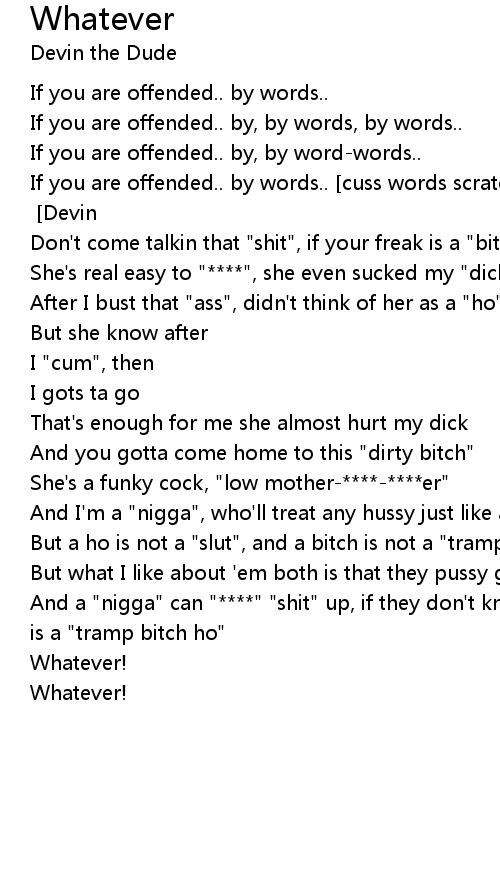 If you are offended.. by words.. [cuss words scratched in wherever quotations appear] [Devin]