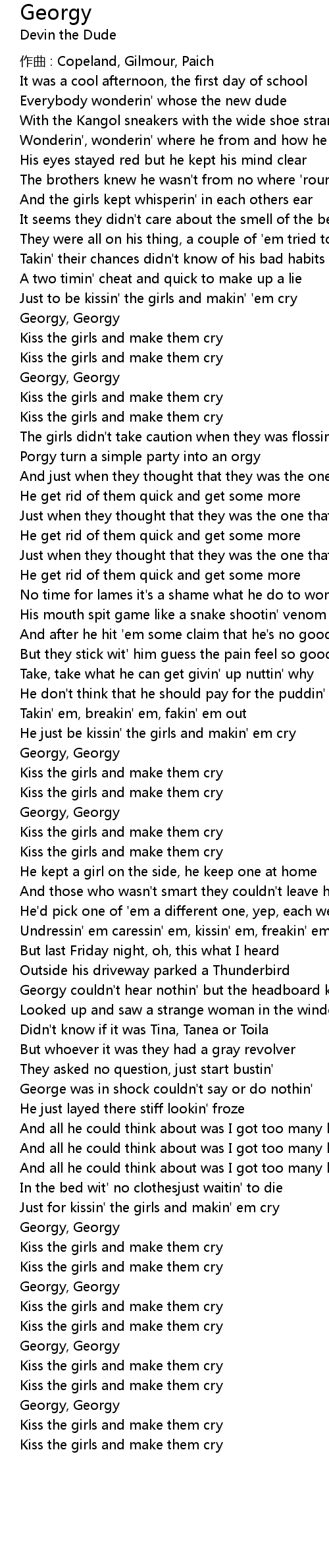 | Georgy couldn' t hear nothin' but the headboard knockin' | |