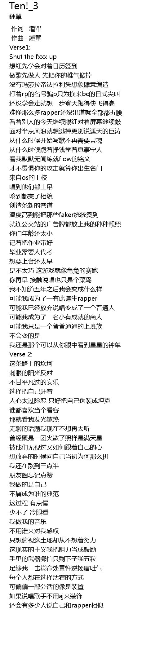 | [00:01.000] | 作曲 : 鍾單 |