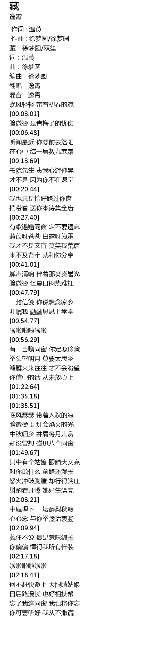 | [00:00.01] | 藏 - 徐梦圆/双笙 |
