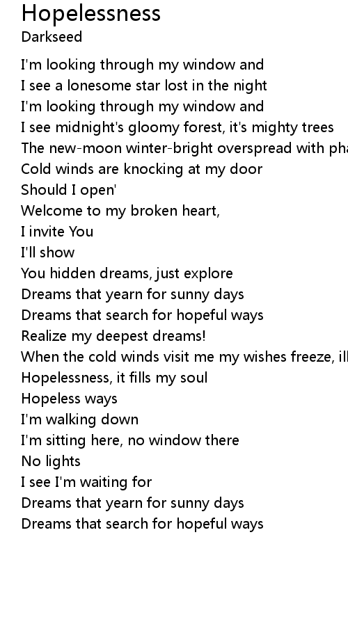 Hopelessness, it fills my soul |