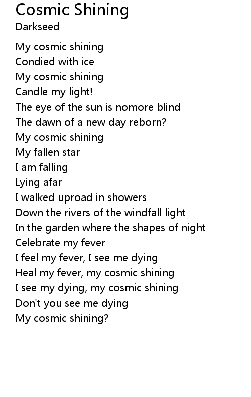 | Heal my fever, my cosmic shining | |