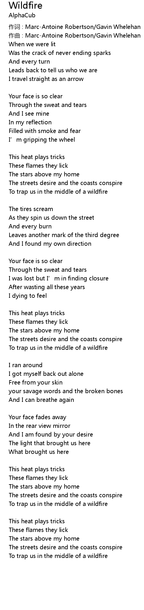 | 作词 : Marc-Antoine Robertson/Gavin Whelehan | |
