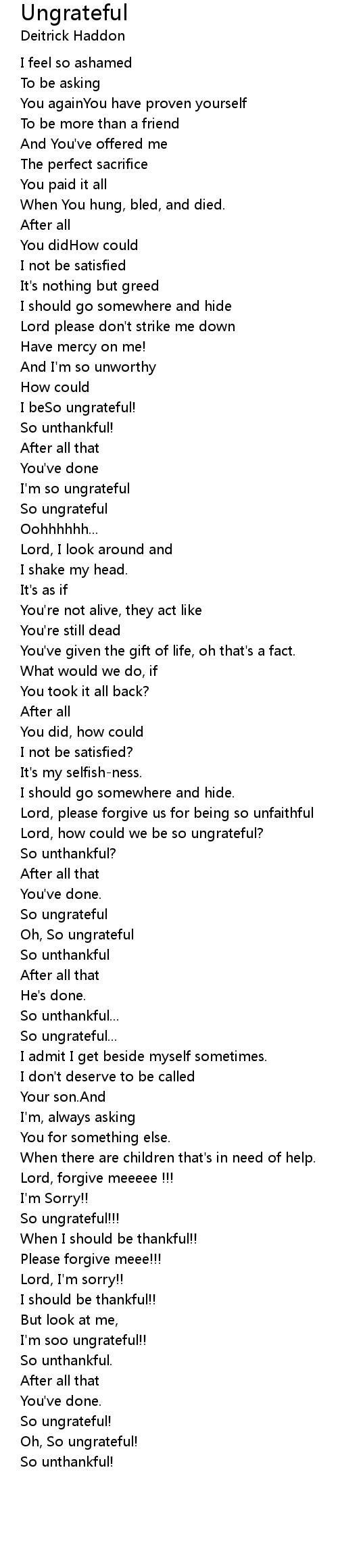 I'm so ungrateful |