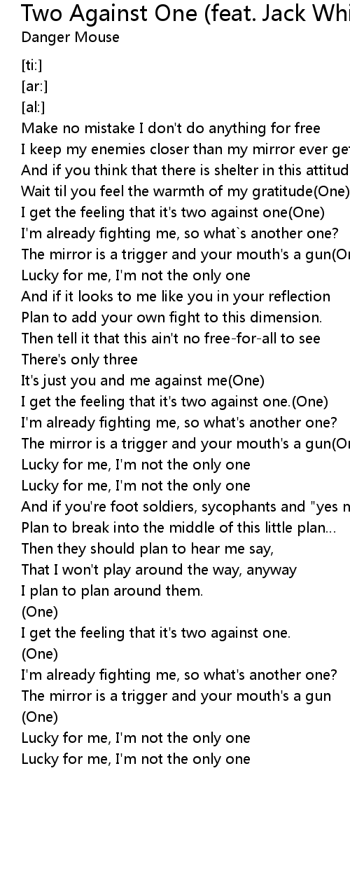 | [00:25.55] | I get the feeling that it's two against one(One) |