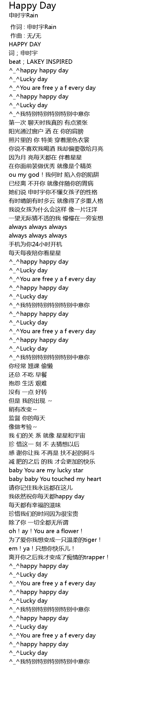 | [02:33.945] | 我依然祝你每天都happy day |