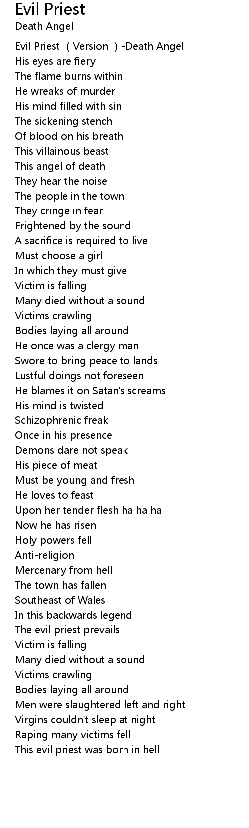 | [00:00.00] | Evil Priest Version Death Angel |