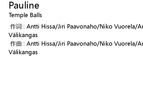 | [00:00.000] | 作词 : Antti Hissa/Jiri Paavonaho/Niko Vuorela/Arttu Teronen/Jimi Välikangas |