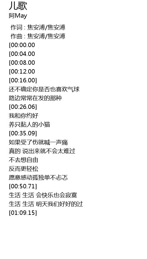 | [00:00.000] | 作词 : 焦安溥/焦安溥 |