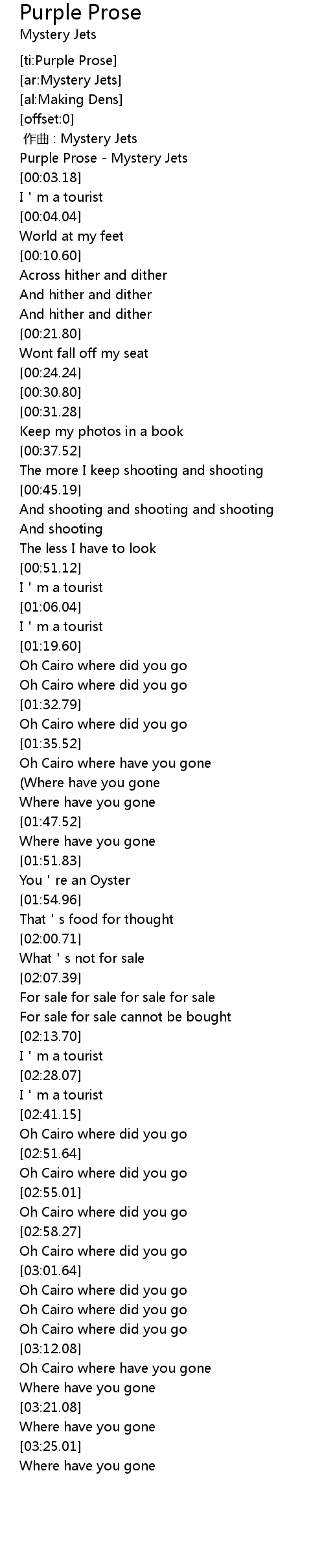 | [00:01.49] | Purple Prose Mystery Jets |