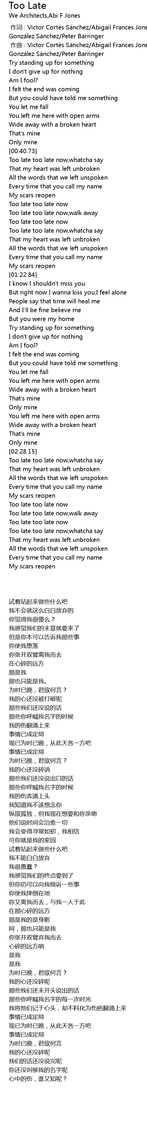 | [02:44.86] | 现已为时已晚,从此天各一方吧 |