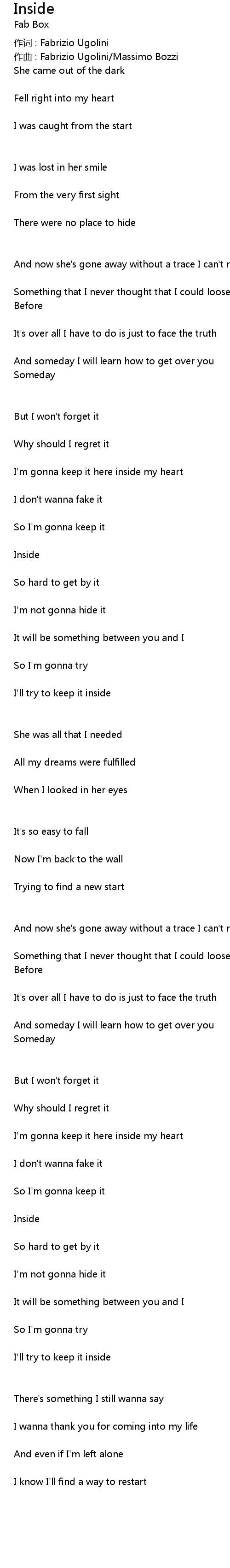 | 作词 : Fabrizio Ugolini | |
