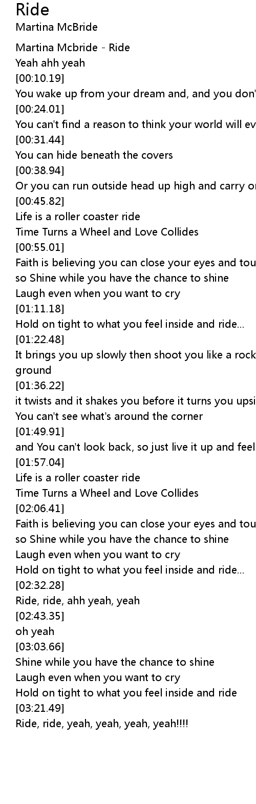 [03:23.24] Ride, ride, yeah, yeah, yeah, yeah!!!!